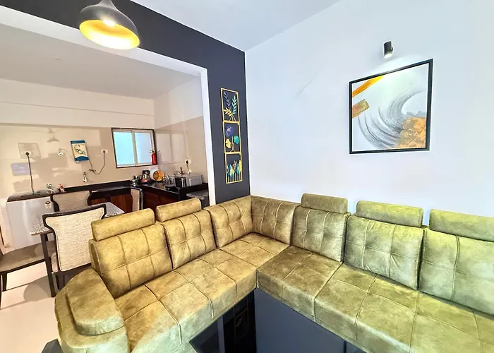 Strand von Baga befindet sich 3 Kilometer vom Apartment Space46 Anjuna entfernt und ist einen Besuch wert. Die 2-Zimmer-Apartments verfügt über einen Swimmingpool und eine Terrasse mit Blick auf den Garten.